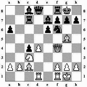 bxa4 11.Dxa4+ Ld7 12.Dc2 Sc6 13.Txa6 Sb4 14.Txa8 Dxa8 15.De2 Sxd3 16.Dxd3 0–0