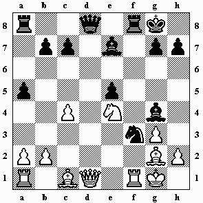 3.Kg4 Kg6 4.Dd6+ f6 5.De6 mit Ausgleich.) 3.Kg2 Df5 4.Dc4 b5 5.Dd4 mit