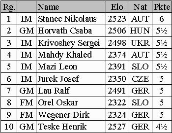 Staatsmeister IM Niki Stanec mit einem alleinigen Sieg mit 6 Punkten aus 7