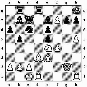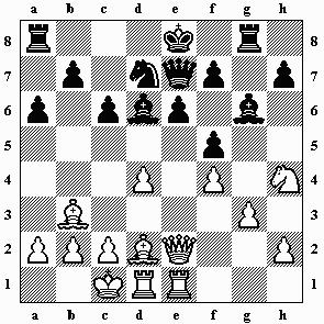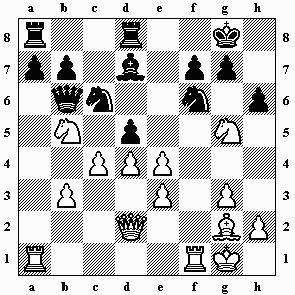 12.0–0–0 De7 13.Sh4 Lg6 14.f4 Weiß hat deutliche Initiative.