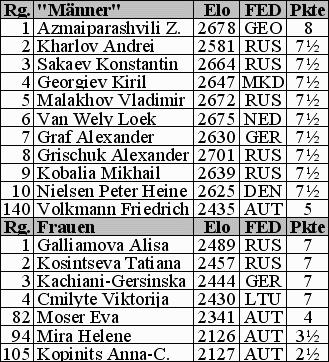 sich bis jetzt sehr wacker: 5 Punkte gegen 11 Großmeister! Die Damen sind