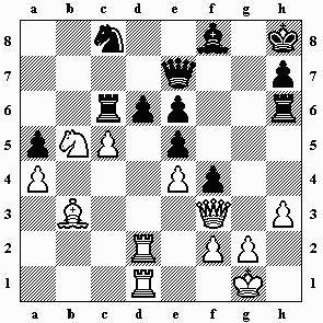 25.Txd5 Sf6) 23.Lb3 mit Gleichgewicht, Polgar-Nunn, Aktiv-Schach Amber 1994.