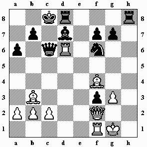 5.Dxg8+ Sxg8 6.Sf7#) 5.hxg4 und Schwarz ist gegen den Angriff wehrlos 1–0