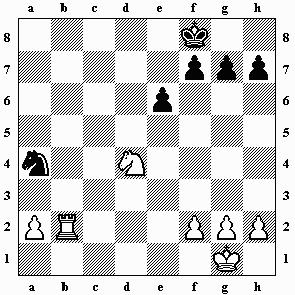 b5 11.Sd6 a4 12.b4 Kf4 13.Sxb5 Kg3 14.Sd6 Kxg2 15.b5 h5 16.Sf5 Kf3 17.b6 Sc4+