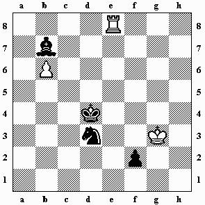 2...Kxd5 3.b7 f1D 4.b8D Df2+ Erstaunlich, obwohl so wenig