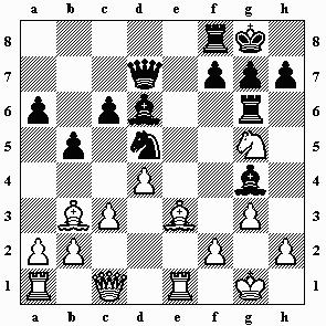 2...Lg6 3.exd6 Lxe4+ 4.Ka1! De8 5.fxe4 a4 6.La2 Tf3 Schwarz
