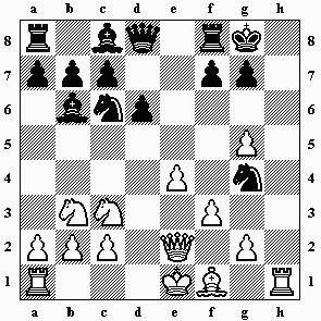 7.Sxf6+ Sxf6 8.Lh4 c5 9.Se5 Eine Runde später in der Partie Anand-Gurevich