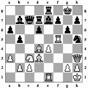 Shirov.) 17...Dxb4 18.Se2 Db7 19.e5 Sh5 20.Dh3 g6 entsteht. Schwarz sollte